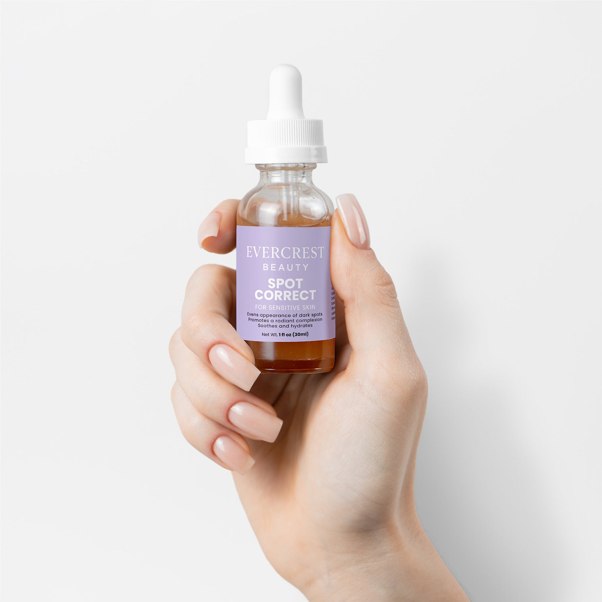 Introducing our Dark Spot Serum, designed for sensitive skin. Hydration sets the stage for targeted dark spot reduction. Natural extracts work together to brighten and even skin tone while providing soothing repair.